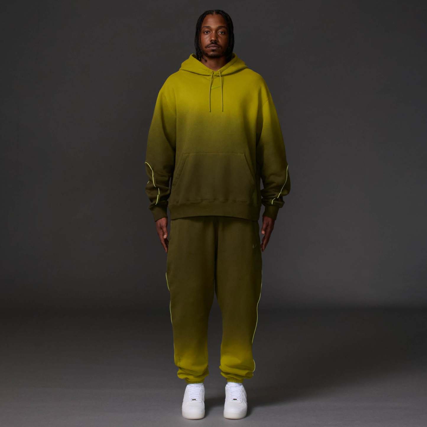 New gradient fleece. 82% cotton 18% poly. Reflective piping. Zippered front hand pockets. Elasticated cuff opening. NOCTA signature HD print branding. Loose fit.